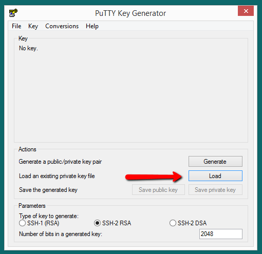 1 – Abrimos el programa PuTTYgen y clicamos sobre “Load”