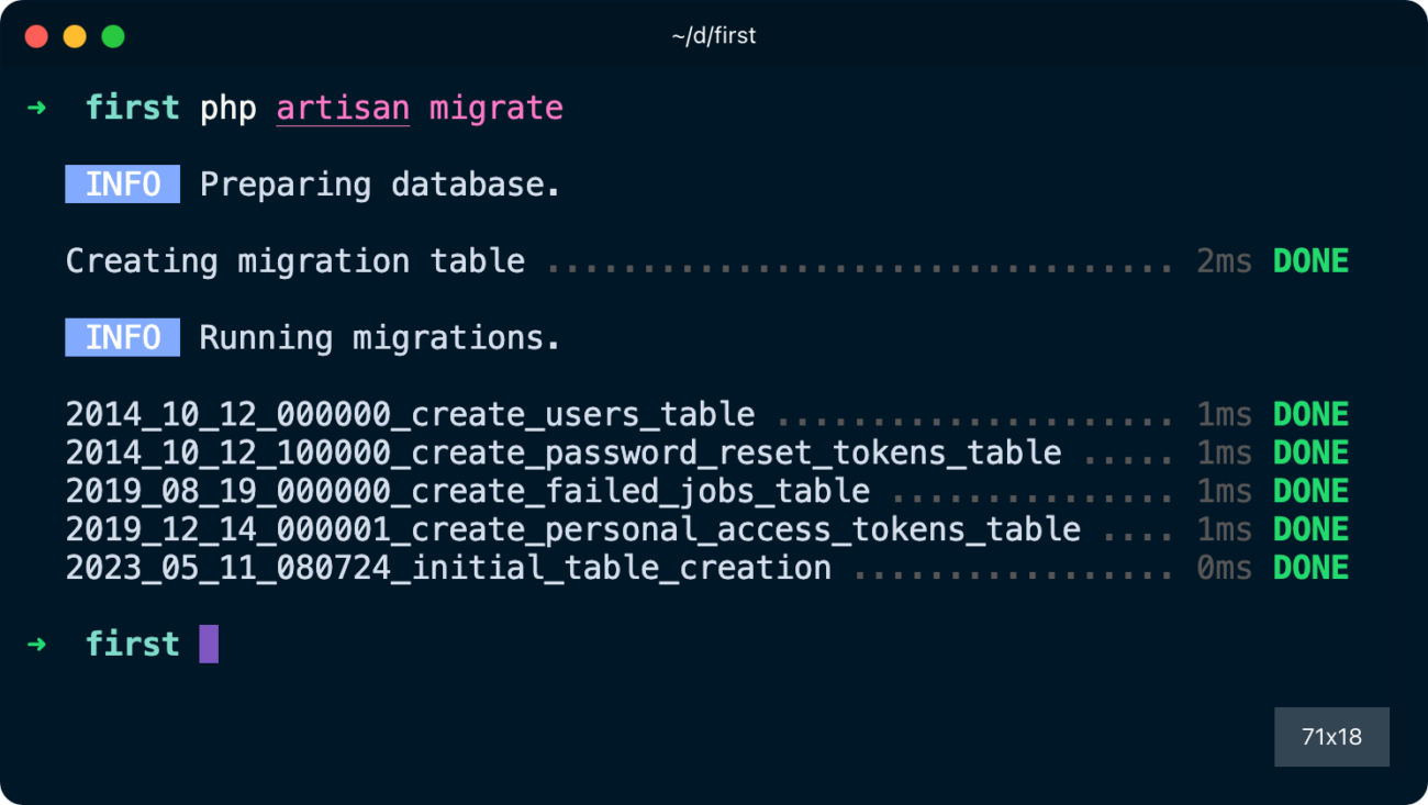 Utilitzant aquests dos comandos, podràs assegurar-te de què passarà quan executis php artisan migrate en producció sense fer cap canvi real a la base de dades.